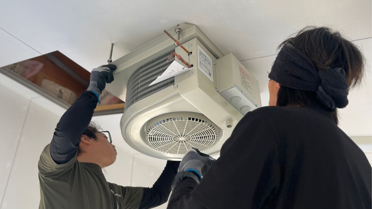 今回の工事では、ワインの品質を守るための低温用(冷蔵)エアコンを設置しました。